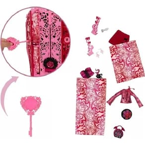 Desvendando os segredos por trás dos portões de Monster High com este armário do conjunto Skulltimate Secrets: Garden Mysteries! Acompanha a boneca Draculaura, além de roupas e acessórios vamptásticos. A Draculaura tem uma festa de chá assustadora para participar, mas ela desapareceu! Você pode procurar pistas para descobrir sua localização e mais de 19 surpresas em 3 etapas assustadoramente divertidas: resolver, desbloquear e revelar. O primeiro passo? Usar a lupa para revelar os símbolos no mapa do tesouro. Ao destrancar as portas do armário, as crianças encontrarão amuletos que correspondem aos símbolos do mapa! Esses amuletos estão escondidos entre as surpresas arrepiantes de roupas e acessórios. Ao juntar os três, formam um único talismã misterioso. Inserir o talismã na base do armário e deslizá-lo para cima, como um zíper, para revelar a boneca Draculaura! Você pode repetir a revelação várias vezes para se divertir sem parar.Idade acima de 4 anos