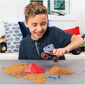 CONSTRUA! PULE! CAIA! ESMAGÁ-LO! FAÇA DE NOVO! Apresentando o novo Monster Jam Monster Dirt Starter Kit! Dos criadores de Kinetic Sand vem o novo monstro de vida que imita as condições reais do Monster Jam! Este conjunto de partidas corajosos adiciona um novo nível de diversão e uma nova maneira de jogar com todos os seus caminhões monster jam favoritos! Molde, construa e pule sobre rampas realistas com seu exclusivo caminhão Monster Jam! Use o molde de rampa incluído como uma rampa pronta para uso, um molde para construir sua própria rampa e um contêiner de armazenamento Monster Dirt! Use a rampa ou construa a sua própria para ação rápida e voadora! Além disso, o exclusivo caminhão Monster Jam em escala 1:64 é detalhado com pneus BKT manchados de sujeira, dando-lhe uma aparência ainda mais real do que nunca! Inicie seu evento Monster Jam com o novo conjunto monster dirt starter!