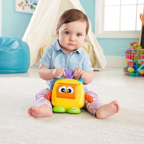 O Monstro Carinha Surpresa Fisher-Price FFC30 é o brinquedo que diverte, enquanto ensina. Basta uma batida para que o bebê consiga girar a o rosto do monstro, observando cada sentimento que aparece, inclusive por meio de sons. São elas: felicidade, tristeza e surpresa. Ele estima o desenvolvimento sensorial, a audição e a principalmente, a percepção das emoções e expressões.