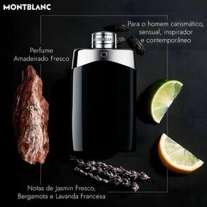 A embalagem do perfume reflete a elegância e o estilo clássico da marca Montblanc. O frasco é sólido, com linhas limpas e uma tampa prateada que lembra a forma de uma tampa de caneta. Tudo isso contribui para a estética refinada e masculina de Montblanc Legend.