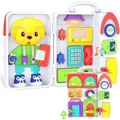 Mantenha seus filhos ocupados e quietos: compacto, leve e com alça, fácil de levar para qualquer lugar e pode prender a atenção das crianças por muito tempo. Definitivamente, ótimos brinquedos sensoriais para crianças de 1 ano ou mais quando estão no carro ou no avião durante viagens longas.