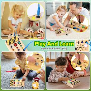 Tabuleiro Montessori Busy Board, brinquedos Montessori para crianças de 1 a 3 anos, quadro sensorial para bebês, atividades de aprendizagem pré-escolar, brinquedos de madeira para crianças pequenas, presente de Natal e aniversário para meninos e meninas - Brinquedos Montessori para crianças em idade pré-escolar - Este design de prancheta para crianças de 1 a 3 anos com 8 interruptores de estilo e 14 lâmpadas LED. O quadro sensorial com interruptores e luzes diversificados fascina as crianças. É capaz de manter as crianças ocupadas por mais de uma hora. Precisa de 2 pilhas AAA, mas a bateria não está incluída. - Presentes perfeitos para crianças — Esta prancha montessori é o presente perfeito de aniversário e Natal para crianças. As crianças podem usar este quadro ocupado para reconhecer cores e tamanhos diferentes. Seu filho ficará obcecado por ele! - Um ótimo brinquedo para aprender - Esta prancha de madeira ajuda os bebês a desenvolver habilidades motoras finas, praticar a coordenação olho-mão, a discriminação de cores e a desenvolver inteligência. Este brinquedo sensorial é bem construído e todos os botões têm o tamanho perfeito para as crianças pressionarem com facilidade. - Brinquedo de viagem pequeno e portátil - Acho que esta prancha para bebês é um item indispensável para viagens rodoviárias/de avião para crianças. Trazê-lo em uma viagem de estrada/avião o ajudará a se concentrar no assento e a não ficar entediado. - Garantia de qualidade - Nossas tábuas são cortadas de troncos inteiros de alta qualidade e são bem feitas. As bordas e cantos foram polidos várias vezes e são lisos e sem espinhos de madeira. Se você tiver algum problema com sua prancha ocupada para crianças de 2 a 4 anos, primeiro, resolveremos o problema em 24 horas. Sua compra é coberta por uma garantia de 1 ano.