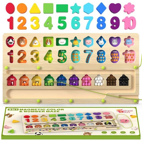 Brinquedos Airbition Montessori para crianças com mais de 3 anos, labirinto magnético de cores e números, brinquedos de separação de formas para crianças pequenas, brinquedos educativos de contagem e combinação para crianças em idade pré-escolar
