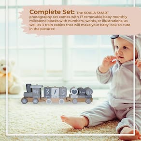 - A Milestone Toy tem um espírito de alegria - O KOALA SMART é o primeiro a criar trens de madeira Milestone mensais para você e para os momentos especiais de seu bebê. Os blocos marcantes empilháveis para trens de madeira incluem 3 cabines e 17 blocos removíveis e oferecem uma maneira muito fácil e divertida de documentar marcos na vida de seu bebê. Essas faixas etárias para bebês vêm nas cores branca e cinza (cor unissex).