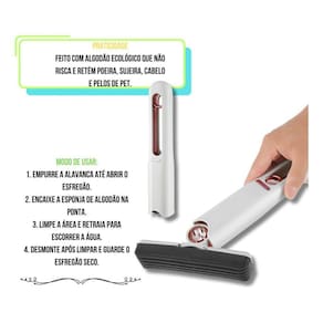 Além disso, esse mini mop é muito fácil de usar. Basta umedecer a esponja, apertar o cabo para liberar a água e pronto! Você estará pronto para limpar qualquer superfície com facilidade e eficiência.
