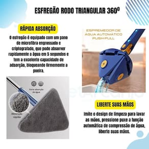 Mop De Limpeza Triângulos Ajustável 360 Graus Rotativo