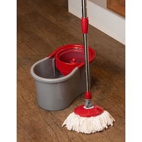 Mais conhecido como Mop giratório, esse produto é uma mão na roda, o balde tem um cesto onde você torce o esfregão,com ele você elimina de vez o pano de chão.Isso significa que você não precisa ficar abaixando o tempo todos para pegar o pano e torcer. Ele é ótimo para limpar pisos amadeirados, frios e sintéticos.