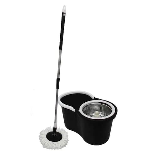 Mop Esfregão Giratório de Limpeza Inox com Rodinha e Refil Cor: Preto Com o Mop Rotatório a sua limpeza será muito mais fácil, prático, durável e eficiente O Mop vai substituir a vassoura, o rodo e o pano de chão, tem grande poder de absorção, pode ser em pisos frios, sintéticos ou amadeirados etc. Evita contato com produtos químicos e água e sujeira. --------------------------------------- ----------------------------------------- Características: - Centrifuga inox; - Trava para regulagem de altura e função giratória on/off; - Escoamento de água com tampão; - Alça flexível para transporte e manuseio; - Acompanha 2 refil de microfibra; - Cabo telescópico em aço inoxidável ajustável. Dimensões: - Altura: 21 cm; - Largura: 25,5 cm; - Comprimento: 45 cm; - Altura máx. Do cabo: 1,28 m; - Capacidade do balde: 12 litros em total e 7 litros em uso. Marca: Não Informado Ean: 790821415410