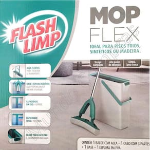 Mop Flash Limp Flex Com BaldeQuem tem inovação como propósito, mostra isso em cada lugar, em todos os movimentos. Confira o que estamos fazendo de diferente para melhorar o modo como a limpeza é entendida e realizada.Compatível com todos os modelos de mop giratório flashlimp com seu cabo projetado para evitar o contato das mãos com a sujeira, auxilia seu manuseio e colabora com sua higiene, com suas multi funções ele substitui a vassoura, rodo, balde e pano de chão, facilitando o trabalho realizado em seu lar. Seu balde com design compacto é Fácil para transportar e guardar além de possuir uma grade que facilita o escoamento da água e evita o contato direto, assim como é realizado da forma convencional.Ideal para pisos frios, sintéticos ou madeiraPossui balde com capacidade total de 10l e em uso de 4l.Alça flexível e com grade que facilita o escoamento da água e cabo de 1,28mtItens inclusos:1 - balde com alça1 - cabo com 3 partes 1- base1- espuma em pva