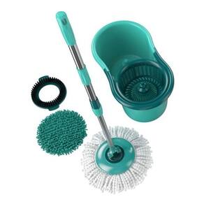 Mop Giratório com dois novos refis: um para limpeza , para manchas e superfícies. Outro para tirar o pó, para limpeza seca. Contém: 1 Balde com alça, cesto e moldura 1 Cabo telescópico com base,1 Refil de microfibra 1 Refil tira pó 1 Refil Limpeza. Após a lavagem, passe um pano com água quente e seque imediatamente, para manter o brilho.