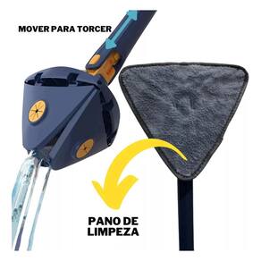 Características: - Design compacto, desmontável, simples e conveniente de usar; - Economize tempo e esforço na hora de fazer a faxina em casa; - Rotação de 360 remove toda a sujeira em uma única passada; - Esfregão com cabeça triangular facilita a limpeza e alcança até os cantinhos mais altos e difíceis de limpar; - Sistema inovador de torção separa a água suja da limpa, mantendo suas mãos longe da sujeira e dos produtos químicos; - Não precisa torcer nem secar os panos sujos; - Microfibra de alta absorção limpa e seca de forma eficaz todo tipo de piso.
