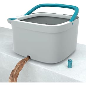 Balde com sistema inovadorque separa a água suja da água limpa, capacidade ecônomica de de uso 2,4 litros, possuie saida para drenagem