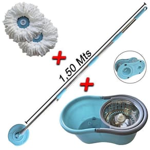 Mop Giratório Cabo Longo 150 Cm Com Rodinhas e 2 Refis Extras