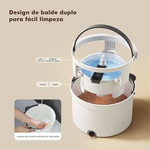 Tecnologia de Autolimpeza: A inovadora balde dupla permite lavar e secar ou refil em segundos. Basta pressionar o esfregão e ele estará pronto para mais ação, sem contato direto com a sujeira.