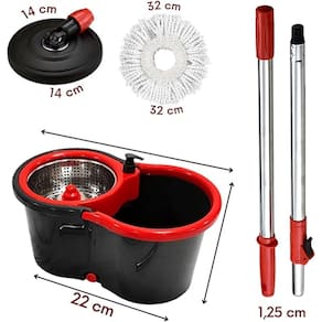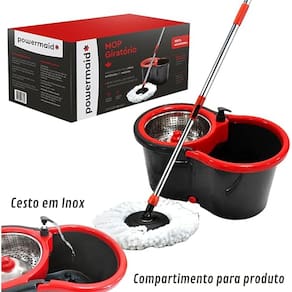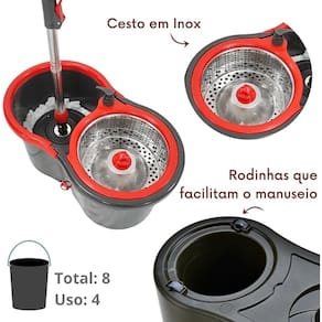 Apresentamos o nosso incrível mop giratório com balde e esfregão 360°! Nossa solução para limpeza de piso é ideal para tornar a limpeza da sua casa ou escritório mais rápida, fácil e eficiente. Nosso mop giratório possui um balde com cesto em inox e um mecanismo de pedal para torcer e enxaguar o esfregão sem esforço. Além disso, possui um reservatório especial para por produtos de limpeza, facilitando ainda mais a tarefa de limpar o chão. A cabeça do esfregão é rotativa em 360°, permitindo que você alcance facilmente áreas difíceis e cantos de difícil acesso. O esfregão é feito de microfibra, o que o torna altamente absorvente e eficiente para remover sujeira e detritos. A qualidade do nosso produto é excepcional, garantindo que você terá um mop giratório durável, resistente e confiável para as suas necessidades de limpeza. Conteúdo: - Balde em plástico e com rodízios - Esfregão em microfibra, 360° - Cesto de inox - Reservatório para produtos de limpeza Transforme a sua rotina de limpeza com o nosso mop giratório de alta qualidade! Adquira agora mesmo e comece a desfrutar de uma limpeza mais rápida, fácil e eficiente. Não perca mais tempo com métodos de limpeza ultrapassados