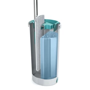 Possui um compartimento de enxágue que conta com dentes que prendem a sujeira, evitando que ela volte ao ambiente. Este mesmo compartimento pode ser desencaixado da parte superior do balde. Além disso, conta com uma alça flexível que facilita o manuseio, uma tampa para facilitar o escoamento de água, uma base fina e flexível 360º que permite alcançar as áreas mais difíceis e o cabo possui um apoio emborrachado.