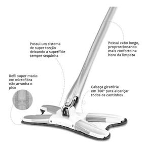 Vantagens Adicionais: Esterilização e Descontaminação: Refis projetados para uma limpeza profunda e higienização dos pisos, eliminando germes e bactérias eficazmente. Nutrição do Piso: Os refis de microfibra não só limpam como também cuidam das superfícies, preservando o brilho e a vida útil do piso. Perfumado: Deixe sua casa com uma fragrância fresca após cada uso, promovendo um ambiente mais agradável e acolhedor.