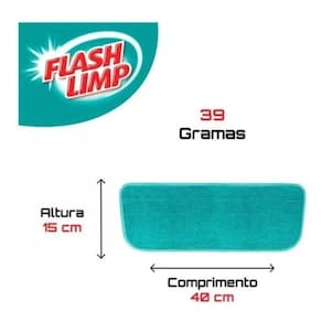 Mop Spray Flash Limp 400ml com Refil Microfibra MOP7800 Verde O Mop Spray Flash Limp 400ml com Refil de Microfibra MOP7800 é a solução ideal para a limpeza eficiente do dia a dia, removendo desde poeira até sujeiras mais resistentes. Com um reservatório de 400ml para água ou produtos de limpeza, ele permite que você borrife diretamente sobre a superfície a ser limpa com o simples acionamento de uma alavanca ao alcance das mãos. Compacto e versátil, ele é fácil de guardar e pode ser em diferentes tipos de pisos e superfícies lisas, como janelas e vidros. Características e Benefícios: - Sistema de Spray: Aplicação precisa de água ou produto de limpeza sobre a sujeira, facilitando a remoção. - Refil de Microfibra: Lavável e de longa duração, a microfibra captura partículas de poeira e sujeira com facilidade. - Fácil de Usar: Cabo com inclinação de 180 e base flexível que gira 360, alcançando áreas de difícil acesso, como embaixo de móveis e cantos. - Versatilidade: Ideal para pisos frios, sintéticos, madeira e superfícies lisas, como vidros e janelas. - Economia de Espaço: O design compacto torna o armazenamento prático, sem ocupar muito espaço. Especificações Técnicas: - Capacidade do dispenser: 400ml - Composição do Mop: ABS, Aço carbono, Aço inox, PP - Composição do refil de microfibra: 80% poliéster, 20% poliamida - Peso do Mop: 780g - Dimensões do Mop: 11 x 41 x 129 cm - Dimensões do refil de microfibra: 15 x 40 x 1 cm - Marca: Flash Limp - Modelo: MOP7800 - : 90 dias contra defeitos de fabricação Cuidados com o Produto: - Não utilize lã de aço ou materiais abrasivos para a limpeza. - Após o uso, seque o Mop com um pano úmido e água quente para manter o brilho e evitar manchas. - Não passe o refil de microfibra no ferro de passar. Conteúdo da Embalagem: - 01 Mop Spray Flash Limp 400ml - 01 Refil de microfibra 1. Posso usar o Mop Spray em pisos de madeira Sim, o Mop Spray Flash Limp é seguro para uso em pisos de madeira, desde que utilizado com moderação na quantidade de água. 2. O refil de microfibra é lavável Sim, o refil de microfibra é lavável e reutilizável, garantindo uma longa vida útil. 3. Qual a capacidade do reservatório de água O reservatório tem capacidade de 400ml, suficiente para limpar uma área considerável. 4. Posso usar produtos químicos no reservatório Sim, o reservatório pode ser preenchido com água ou produtos de limpeza à sua escolha. 5. O Mop é fácil de manusear em áreas de difícil acesso Sim, com um cabo inclinável a 180 e uma base flexível que gira 360, ele alcança facilmente locais como embaixo de móveis e cantos. 6. O produto tem Sim, nossos produtos possuem . O período de varia de acordo com o fabricante e o tipo de produto. Consulte a descrição do produto para mais informações. 7. O produto é novo ou 8. Posso rastrear meu pedido Sim, após a confirmação da compra,a própria plataforma fornecerá todos os dados de rastreamento para acompanhar a entrega do seu pedido. 9. Posso retirar o produto em algum lugar Atualmente, não oferecemos a opção de retirada em local físico. Todos os nossos produtos são entregues diretamente na sua casa. Mantenha sua casa impecável com o Mop Spray Flash Limp