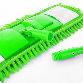 O Mop Vassoura varre, limpa e seca em uma única tarefa. Possui uma base articulada para alcançar os cantos mais difíceis, como debaixo de móveis. Seu cabo regulável permite melhor ajuste da altura. Pode ser aplicado em todos os tipos de pisos, como cerâmica, porcelanato, madeira e laminados. O refil, microfibra pode ser lavável a mão ou em máquina de lavar.