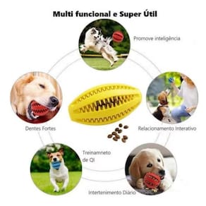 Divertimento garantido com a Bola Oval Porta Petisco Esconda petiscos e veja seu cão se divertir por horas, estimulando o instinto de busca e promovendo o exercício físico.