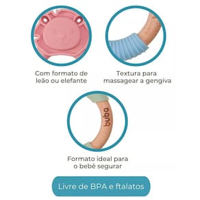 - Auxilia no alívio do desconforto causado pelo nascimento dos dentinhos - Massageia a gengiva sensível - Bambu super leve para que a criança consiga segurar sozinha - Silicone macio - Texturas variadas que massageiam a gengiva do bebê - Encaixe projetado cuidadosamente para a boca do bebê - Design divertido com personagem super fofo - Livre de BPA