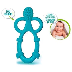 Mordedor em silicone macio, formato anatômico para facilitar na hora de pegar do bebê e também possui formato de escova, com texturas que aliviam a irritação na gengiva!