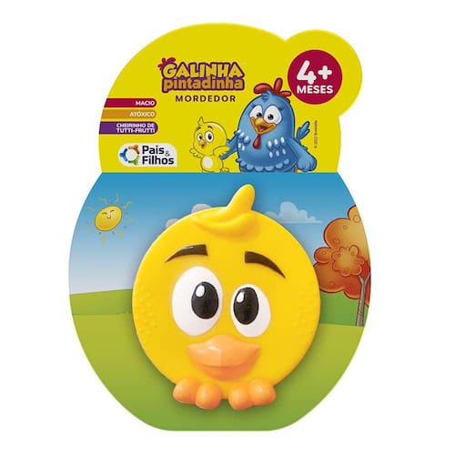 Mordedor para Bebê - Galinha Pintadinha - Pintinho - Pais e Filhos: O Mordedor do Pintinho Amarelinho possui uma pegada confortável para que o bebê o segure firme sem incômodos. Ideal para os primeiros meses de vida com cores vibrantes. O Mordedor Pintinho é macio e gostoso de morder, ajudando o alivio de coceiras e dores na gengiva e fortalecendo a musculatura da mastigação, além de facilitar o nascimento dos primeiros dentinhos. Com material resistente e atóxico para a segurança do bebê. Possui selo de segurança e aprovado pelo INMETRO. Detalhes: • Inspirado no personagem da Galinha Pintadinha • Com design divertido • Macio e gostoso de morder • Produzido com material atóxico e resistente Informações: • Produto: Mordedor Vinil Pintinho Amarelinho • Marca: Pais e Filhos • Coleção: Galinha Pintadinha • Tipo: Mordedor Infantil com Formato • Categoria: Bem-Estar do Bebê • Subcategoria: Mordedores para Bebê • Conteúdo: 01 Mordedor • Recomendação: para bebês a partir de 04 meses de idade Especificações: • Referência: 7916771 • Código de Barras: 7908470016770 • Embalagem (C x A x L): 13 x 19 x 2,5 cm • Embalagem (Peso): 0.070 g • Material / Composição: Vinil • Registro: CE-BRI/ICEPEX-N 01264-25 - 003822/2019 • Certificado: Órgãos Autorizados - OCP´S (Organismos de Certificação de Produtos) Benefícios do mordedor para o bebê: • Alivia a coceira e dor na gengiva • Facilita o nascimento dos dentes • Fortalece a musculatura da mastigação • Estimula habilidades motoras básicas • Desenvolve aspectos emocionais e afetivos • Proporciona o treino dos sentidos, estimulando a criança naturalmente Aviso: • As imagens são meramente ilustrativas • Os pesos, tamanhos e medidas são aproximados • As cores e estampas dos produtos podem ter variações • As informações são de responsabilidade do fabricante ou fornecedor