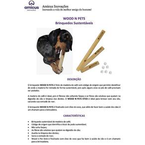 A madeira do cafe´ e´ ideal, pois e´ fibrosa na~o soltando farpas e as fibras sa~o celulose que ajudam na digesta~o do ca~o e limpeza dos dentes. O WOOD N PETS STICK e´ ideal para brincar com seu ca~o, saciando sua vontade de roer.