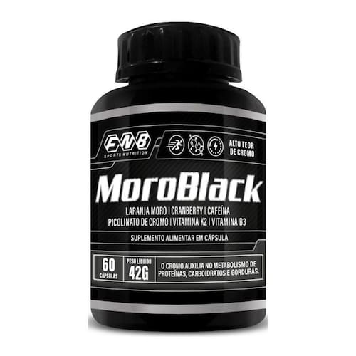 MOROBLACK Seu maior aliado no treino, além de conter alto teor de cromo o Moroblack conta com diversos ativos sendo os principais a Laranja Moro, Cranberry, Cafeína, Vitamina K2 e Vitamina B3. Psyllium também faz parte de seus ingredientes.Recomendação de uso: 2 cápsulas ao dia pela manhã ou antes de treinar NÃO CONTÉM GLÚTEN Produto dispensado de registro no Ministério da Saúde conforme RDC ANVISA 23/00, 27/10, 240/18, 243/18, in 28/18, RDC 429/20 e IN 75/20