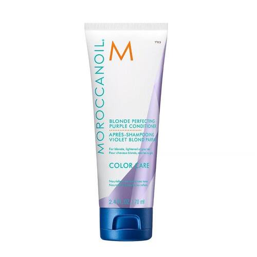 O Moroccanoil Blonde Perfecting Purple Condicionador é um condicionador da linha Blonde Perfecting, desenvolvido para cabelos loiros, descoloridos ou grisalhos. Enriquecido com pigmentos violeta e tecnologia ArganID, neutraliza tons amarelados e alaranjados, enquanto hidrata, desembaraça e melhora a maleabilidade. Sua leve, com aminoácidos e óleo de argan, fortalece, protege a cor e proporciona brilho, sem pesar. Livre de sulfatos, fosfatos e parabenos, é para cabelos coloridos. Apresentado em um frasco plástico com tampa flip-top, é prático e oferece cuidado .