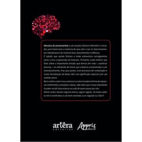 Mosaico de pensamentos é um projeto literário diferente e inovador, pois transcreve a essência do que vêm a ser os relacionamentos interpessoais de maneira leve, descontraída e re?exiva. É sabido que aonde formos e onde estivermos carregaremos junto a nós a expressão do humano. Portanto, nada melhor que falar sobre a importante missão que temos em vida – construir pessoas – se utilizando de frases que estamos acostumados a ver individualmente, mas que juntas, num processo de compilação e numa formatação de texto, têm um signi?cado especial com um sentido único. Bem-vindos a este novo universo e a esta inovadora forma de expressar sentimentos, emoções e ideias. Vale dizer que o mais importante é poder incutir boas marcas na vida de quem passa por nós. A?nal, todos deixam alguma marca, algum legado. Só basta saber se ele é construtivo e um bom exemplo a ser seguido ou não!!! Marca: ARTERA EDITORA