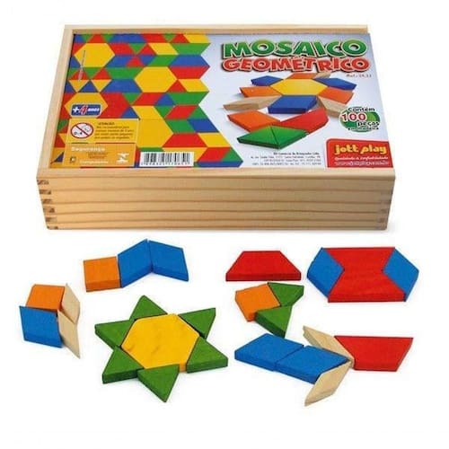 Mosaico Geométrico 100 Peças Cx Madeira Mosaico geométrico composto por 100 peças multicoloridas em madeira em forma de figuras geométricas diversas: triângulo, hexágono, quadrado, losango. Acondicionado em caixa de madeira medindo: 05x16x30 cm CE-BRI/ICEPEX - N 00928-96 Mosaico geométrico composto por 100 peças multicoloridas em madeira em forma de figuras geométricas diversas: triângulo, hexágono, quadrado, losango. Acondicionado em caixa de madeira medindo: 05x16x30 cm CE-BRI/ICEPEX - N 00928-96
