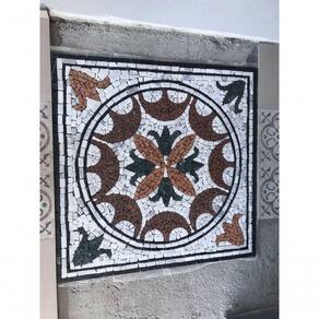 Especificações técnicas do mosaico: Feito com pedras - Mármores e granitos de todo o e importados da Europa e Ásia - para obter todas as cores desejadas em pedras naturais; Vem todo montado sobre tela, só colocar conforme manual de colocação, Resistência e Durabilidade em área interna e externa; Espessura de 10 mm Mesma espessura do porcelanato ou piso cerâmico Liso e agradável para uso diário; Mosaico feito integralmente à mão com técnica do mosaico romano;