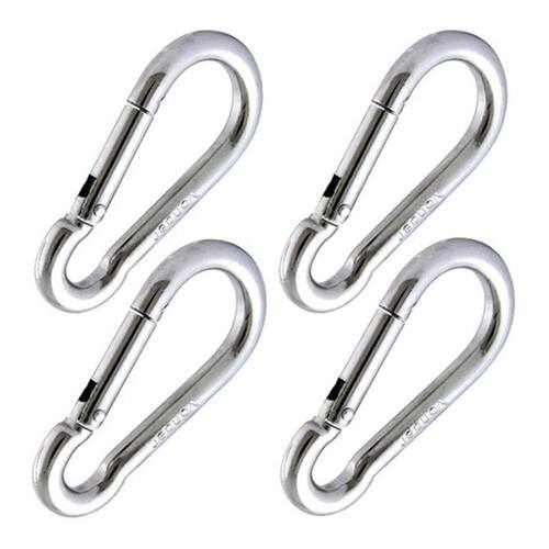Mosquetão Academia Com Trava 04 Unidades de 8 cm - Capacidade 230 Kg - Medida 80 mm 8 centímetros - Material Superior - Trava Resistente - não solta - Aço Carbono - Acabamento Galvanizado - Tratamento anti ferrugem - Capacidade 230 Kg 04 Unidades - 80 mm 8 centímetros