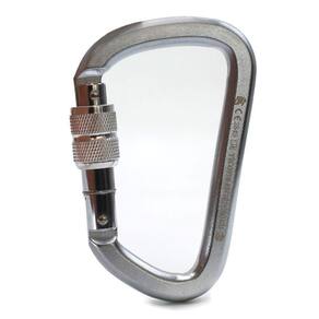 Mosquetão em aço de alta resistência feito em aço carbono no formato D assimétrico trava rosca, com abertura 24mm. Este equipamento é testado e aprovado segundo normas ABNT e as norma NBR 15837:2020/B. Este mosquetão é testado e aprovado pela Comunidade Européia, segundo normas EN 362:2004/B. Um mosquetão diferenciado de alta resistência feito em aço, nas mais diversas atividades em altura. Especificações técnicas:Carga de ruptura: 35KN.Material: Aço de alta resistência.Trava: Tipo roscada.Peso: 206g.Comprimento: 112mm.Largura: 70mm.Abertura: 24mm.Carga de ruptura: 35KN.Ruptura com mosquetão aberto: 7KN.Ruptura com tração lateral: 7KN.Certificação Internacional: CE 2849, EN362:2004/B.Normatização: NBR 15837:2020/B.