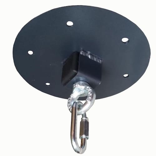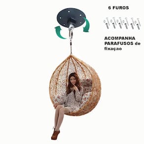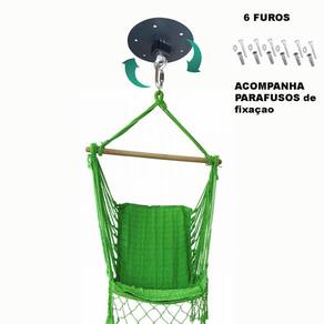 Suporte Giratório Chapa redonda Robusto Para Cadeira de Balanço Suspensa/Teto: Produto Versátil e Funcional, Fácil Instalação Capacidade: 150Kg Acompanha os parafusos de fixaçao Feita em aço medindo 15 cm de diametro . Ideal para cadeiras redes de teto reforçada. Giratorio. Acompanha mosquetao e parafusos Ean: 7895221453192
