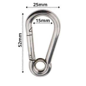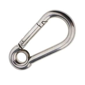 Mosquetão inox com olhal 5mm x 50mm 50kg Acessório multiuso, utilizado para fixação de cabos, chaveiros, cordas. Construído em aço 316 de alta resistência para utilização em ambientes marinhos.