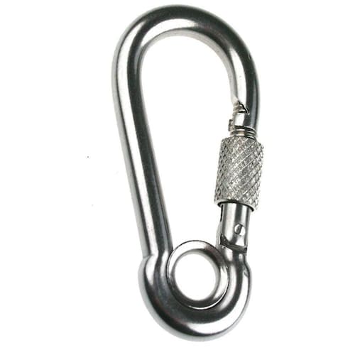 Mosquetão inox Descrição do produto Acessório multiuso, utilizado para fixação de cabos, chaveiros, cordas. Construído em aço 316 de alta resistência para utilização em ambientes marinhos. Informações adicionais: Material: inox 316 Alta resistência Trava de segurança Tens inclusos na embalagem: 01 mosquetão inox Marca: Não Informado