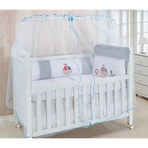 Com dimensões de 1,50m de altura x 1,35m de comprimento parte para o varal x 6,00m de circunferência para envolver todo o berço , este mosquiteiro é adequado para berços de padrão Americano ou Nacional.