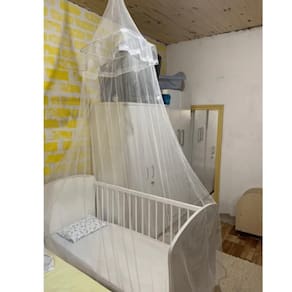 Nosso mosquiteiro é perfeito para o berço, mas é tão espaçoso que se encaixa facilmente em uma cama de solteiro também. Versatilidade e proteção em um só produto