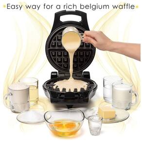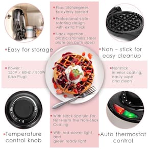 Máquina de Waffle com design giratório, superfícies duplas, grade extra grossa, revestimento antiaderente e termostato ajustável.Porta-fio
