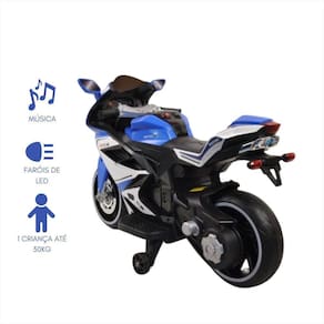 Moto Azul Criança Rodinha De Suporte Bateria 12V Música Usb