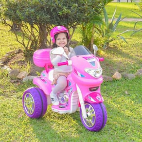 Os pequenos vão adorar se aventurar com a Moto Biemme Sprint Turbo Pink! Essa incrível moto tem rodas largas e resistentes com calotas cromadas, um painel com comando eletrônico que poderá acionar várias luzes e sons, assento anatômico e antiderrapante, carenagem com farol e setas com luzes, além de botão de marcha frente e ré.A diversão não para por aí! Para deixar a brincadeira ainda mais divertida, a Moto Biemme conta painel de acionamento de luz e som, bagageiro com capacete, porta bagageiro cromado, retrovisores e manoplas anatômicas, motores laterais cromados, acelerador de pedal, trava de segurança removível, suporte para pés com antiderrapante e carregador Bivolt incluso. Peso suportado: 35kg.