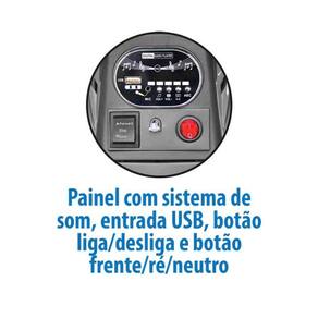 Outras Informações e Instruções de uso: verifique no ato da entrega o estado em que se encontram as peças. Eventuais reclamações só serão aceitas se a reclamação for feita no mesmo dia da entrega (conforme registrado no rastreamento). Idade sugerida: +24 meses. Peso suportado: 30 quilos. Altura máxima sugerida: 1.12 metros. Velocidade aproximada: 3-4 km/h.