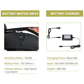 Detalhes: Numero de velocidades: 2 Material: Liga de Aço Peso do item: 45 kg Tipo de suspensão: Frente Montagem necessária: Sim Característica especial Portátil, recarregável Dimensões: 127 de largura x 86 de Altura frontal x 55 de altura traseira, centímetros Altura máxima da criança: 1,37 a 1,82 metros Peso máximo suportado: 83 kg Faixa de velocidade: 24 km, h a 35 km, h Duração da bateria: Baixa velocidade 30 min, alta velocidade 60 min Marca: Não Informado