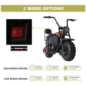 ACIONAMENTO DO MOTOR DE BATERIA: Alimentado por um motor central com potência de 1000 W, torque de 3,18 N m e 2 opções de ajuste de velocidade, o piloto pode escolher direção em alta ou baixa velocidade para se adaptar a diferentes cenários de uso e experimentar diferentes prazeres de direção.