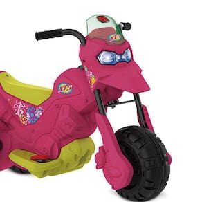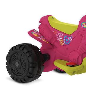 Para alegria dos pequenos temos duas lindas cores disponíveis pra serem escolhidas, a cor Pink e a Titanium. Ela também está mais divertida, com vários relevos imitando peças de moto, trazendo assim a imaginação mais perto da realidade possível, ainda contamos com diversos adesivos espalhados pelo copo do brinquedo. Sua velocidade aproximada é de 3,5 Km/h.
