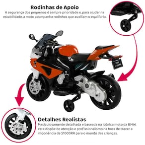 Mini Moto Elétrica BMW S1000 RR Infantil 12 Volts Zippy Toys A escolha perfeita para os pequenos pilotos que desejam vivenciar a emoção de pilotar uma autêntica moto esportiva! Luz dianteira, acionamento via chave, banco de couro sintético. Vem com chave de ignição para os pequenos se sentirem em uma verdadeira moto. Com a Mini Moto Elétrica BMW S1000 RR, as crianças vão se sentir como verdadeiros pilotos de corrida em suas próprias aventuras. Essa réplica em miniatura da icônica moto BMW S1000 RR é o sonho de todo pequeno entusiasta de velocidade. Com um design autêntico e detalhes realistas, a Mini Moto Elétrica BMW S1000 RR vai encantar os olhos dos pequenos e estimular sua imaginação. Eles vão se divertir pilotando sua própria motocicleta BMW, seja no quintal, no parque ou em qualquer superfície plana. A principal vantagem desse brinquedo é a chave de ignição que funciona de verdade, proporcionando uma experiência ainda mais imersiva. As crianças poderão ligar a moto com a chave, assim como os pilotos de verdade, dando um toque de realismo à brincadeira. Equipada com uma potente bateria de 12 Volts, a Mini Moto Elétrica BMW S1000 RR oferece velocidade e desempenho de tirar o fôlego. As crianças poderão sentir a emoção da velocidade enquanto pilotam sua própria moto BMW, criando suas próprias aventuras e desafiando seus limites. Além disso, essa mini moto foi construída com materiais de alta qualidade, garantindo durabilidade e resistência para acompanhar os pilotos mais animados. Seu design esportivo e detalhes fiéis, como rodas de liga leve, escapamento esportivo e faróis de LED, fazem com que as crianças se sintam no controle de uma verdadeira BMW S1000 RR. A Mini Moto Elétrica BMW S1000 RR Infantil 12 Volts com Chave de Ignição Funcional é o presente perfeito para surpreender os pequenos pilotos e proporcionar momentos inesquecíveis de diversão. Além de estimular a imaginação, a criatividade e as habilidades motoras, esse brinquedo permite que as crianças vivam a emoção de pilotar uma autêntica moto BMW em miniatura. Não perca a oportunidade de presentear as crianças com essa experiência única. Adquira agora a Mini Moto Elétrica BMW S1000 RR Infantil 12 Volts com Chave de Ignição Funcional e permita que elas vivam a emoção de serem verdadeiros pilotos de moto!