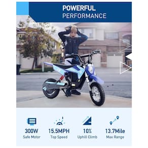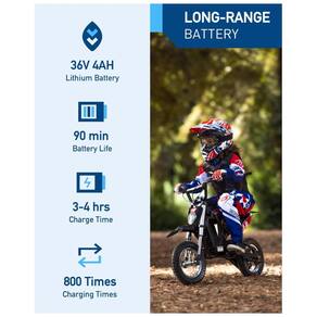 DESEMPENHO SUPER À PROVA DE CHOQUE Equipado com uma mola de absorção de choque de alta resistência e garfo de choque hidráulico, que tem capacidade de absorção de choque super e nenhum ruído durante a condução. Mais silenciosa do que as tradicionais motos elétricas de motocross. BATERIA DE LONGO ALCANCE Oferece ótimo desempenho e até 90 minutos Testado em 39 kg de peso, 14 km, h de longo alcance com sistema de bateria de lítio selada recarregável de 36V em todos os cenários. Leva apenas 4 5 horas para carregar totalmente. MODOS DE VELOCIDADE S A moto tem 3 modos de velocidade s Baixo 5,0 mph 8 km, h, Médio 7,5 mph 12 km, h, Alto 15,5 mph 25 km, h. você pode optar por usar qualquer velocidade para proporcionar a melhor experiência de pilotagem e manter seu filho . DURÁVEL E FORTE A motocicleta elétrica projetada para crianças de 3 a 10 anos com geometria autêntica de bicicleta suja oferece um passeio sólido off road com um peso máximo do piloto de 140 lbs 64 kg. Suspensão maior torna o piloto mais confortável Marca: Não Informado