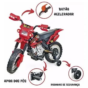 E nas brincadeiras elas se desenvolvem em varias etapas como imaginacao, coordenacao motora e mais. Essa moto da Homeplay e do modelo Moto Cross, conta com funcionamento eletrico.